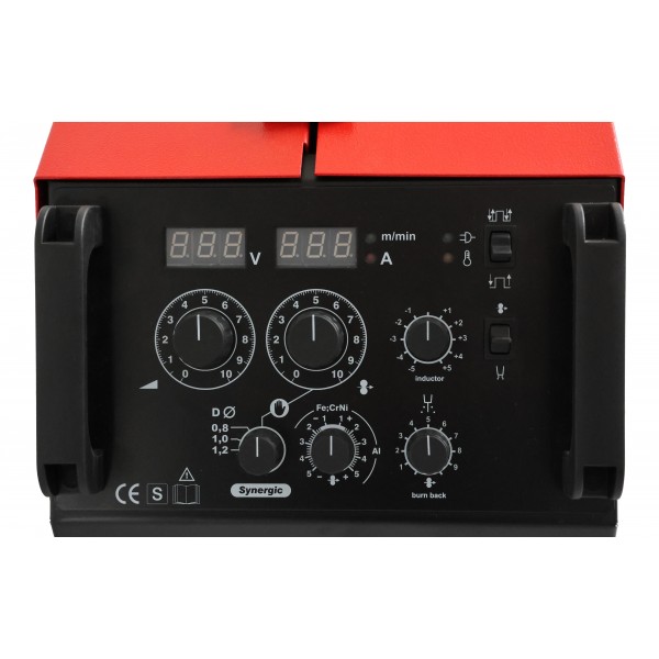 Die Synergiesteuerung sorgt dafür, dass beim Verstellen des Schweissstromes die Drahtvorschubgeschwindigkeit automatisch angepasst wird. Zusätzlich kann der Vorschub auch manuell feinjustiert werden.
