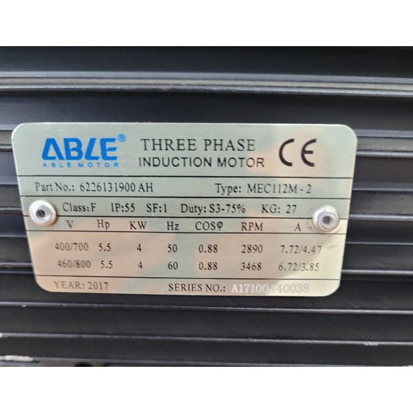 Schwerer Industriemotor mit 4 Montagebohrungen am Fuss, Motorenleistung 4.0 kW, 400 V, 2'890 U/min, Fusshöhe ca. 110 mm, Aufnahmewelle Ø 28 mm mit Keil, Abmessung ca. (T x B x H) 400 x 220 x 290 mm